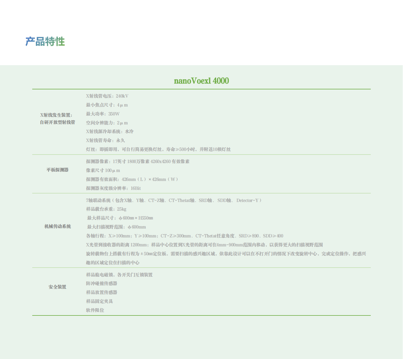 探測器像素 | 17英寸 1800萬像素 4260*4260有效像素 |